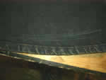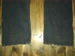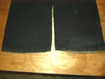 後は、前と同じようにダメージを入れたい場所の下に 湾曲した木片を入れて、加工します 次は裾です これは折り曲げてペーパーでこすりました