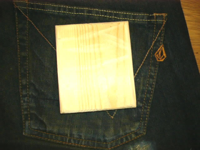 この木片をポケットの中にいれて 財布状のアタリを付けます