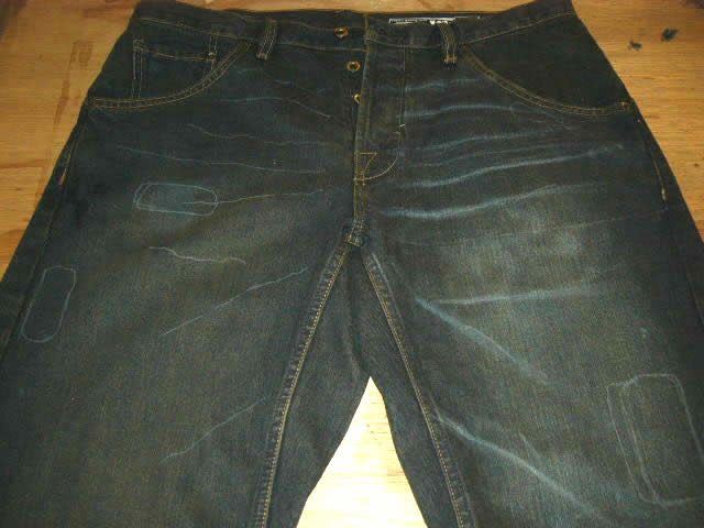 さて、まずは加工するジーンズを穿いてみて どういう風にヒゲが走るかを確認してみます